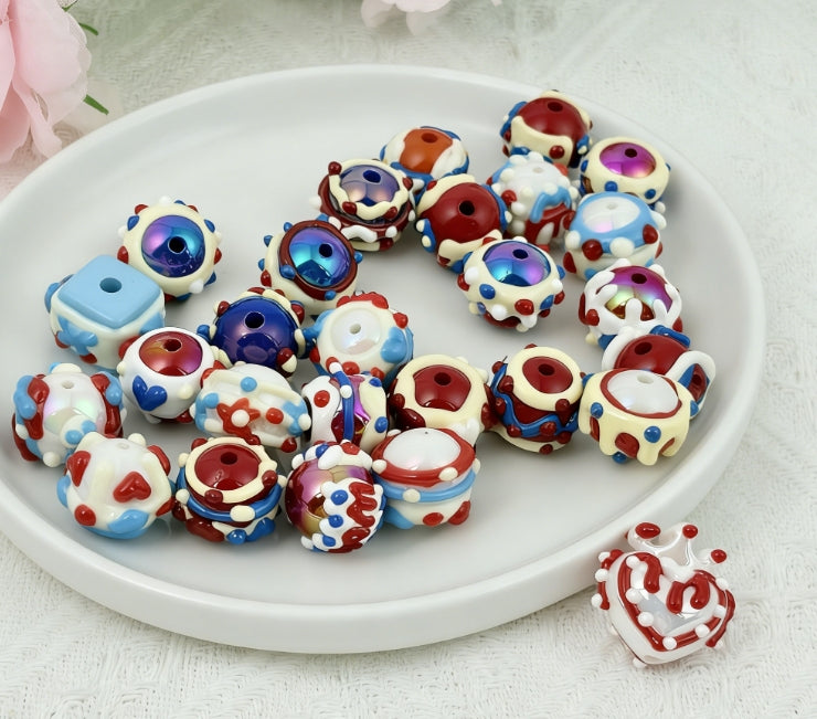 [A110]緋青の絵夢・紅青絵画プラスチック串珠ミックス(5 個 / 10 個 / 20 個)