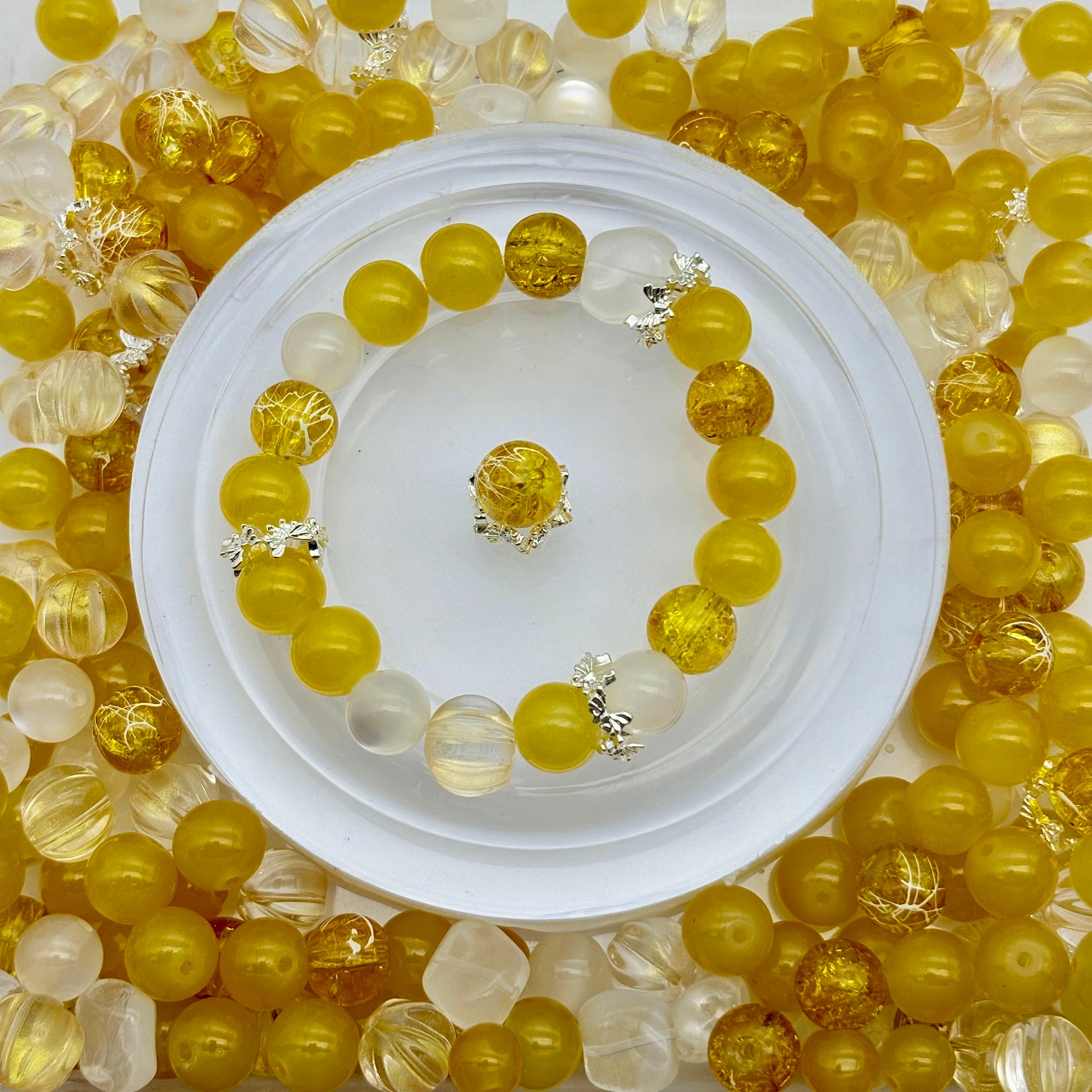 [B28]琉黄の星綴・柔黄透白瑠璃串珠ミックス(50ml)