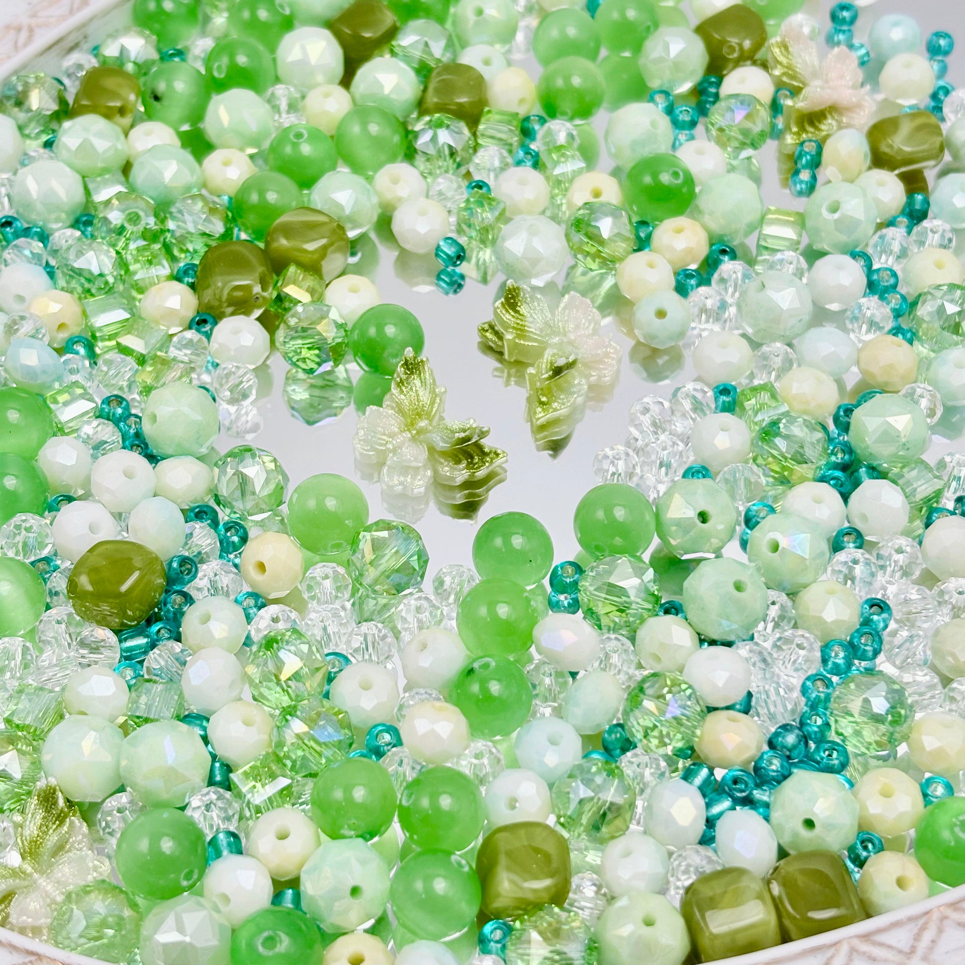 [B103]浅翠透珠・柔緑系ガラス天然石串珠ミックス(30ml/50ml)