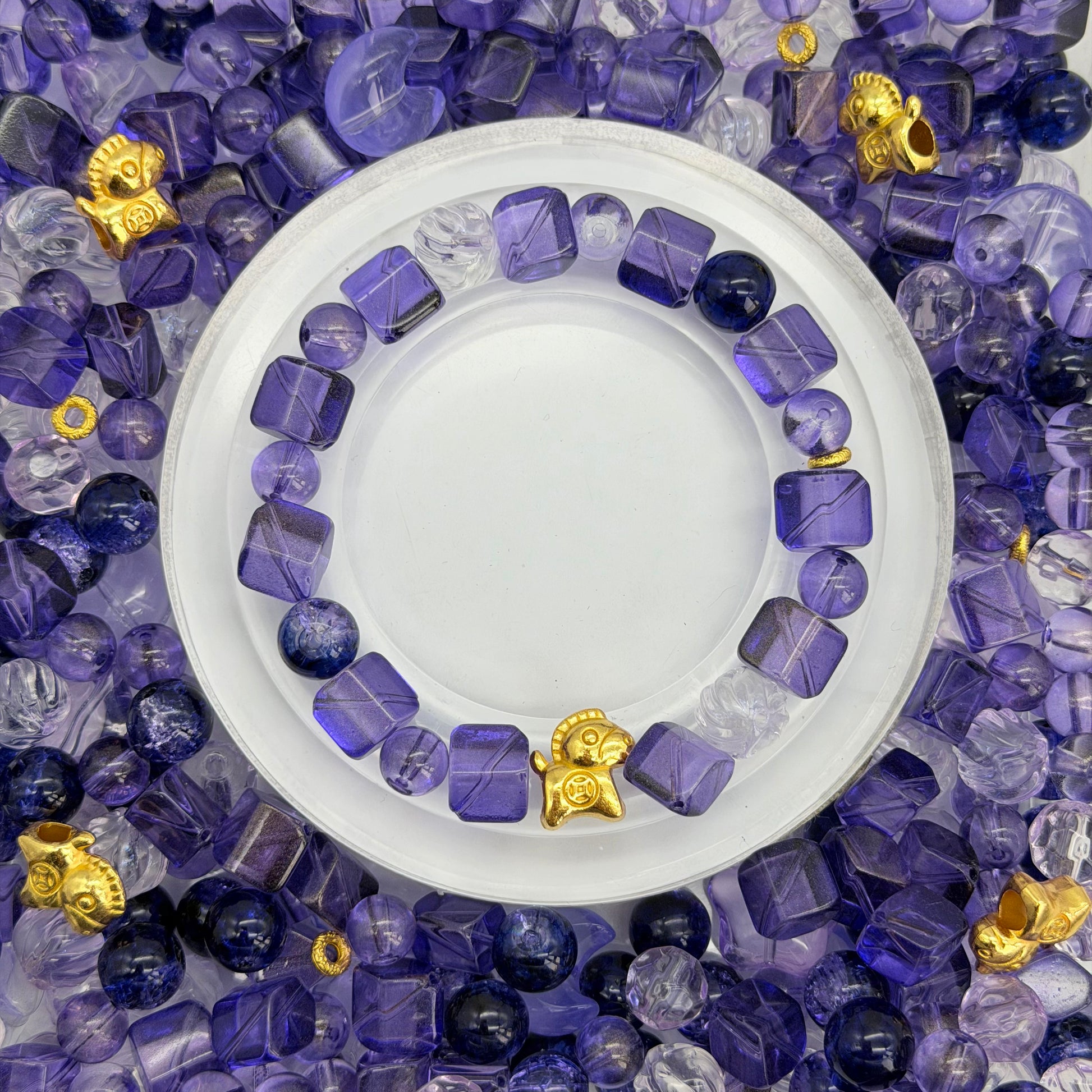 [B155]ゴールドポニーとパープルガラスのアソートビーズ