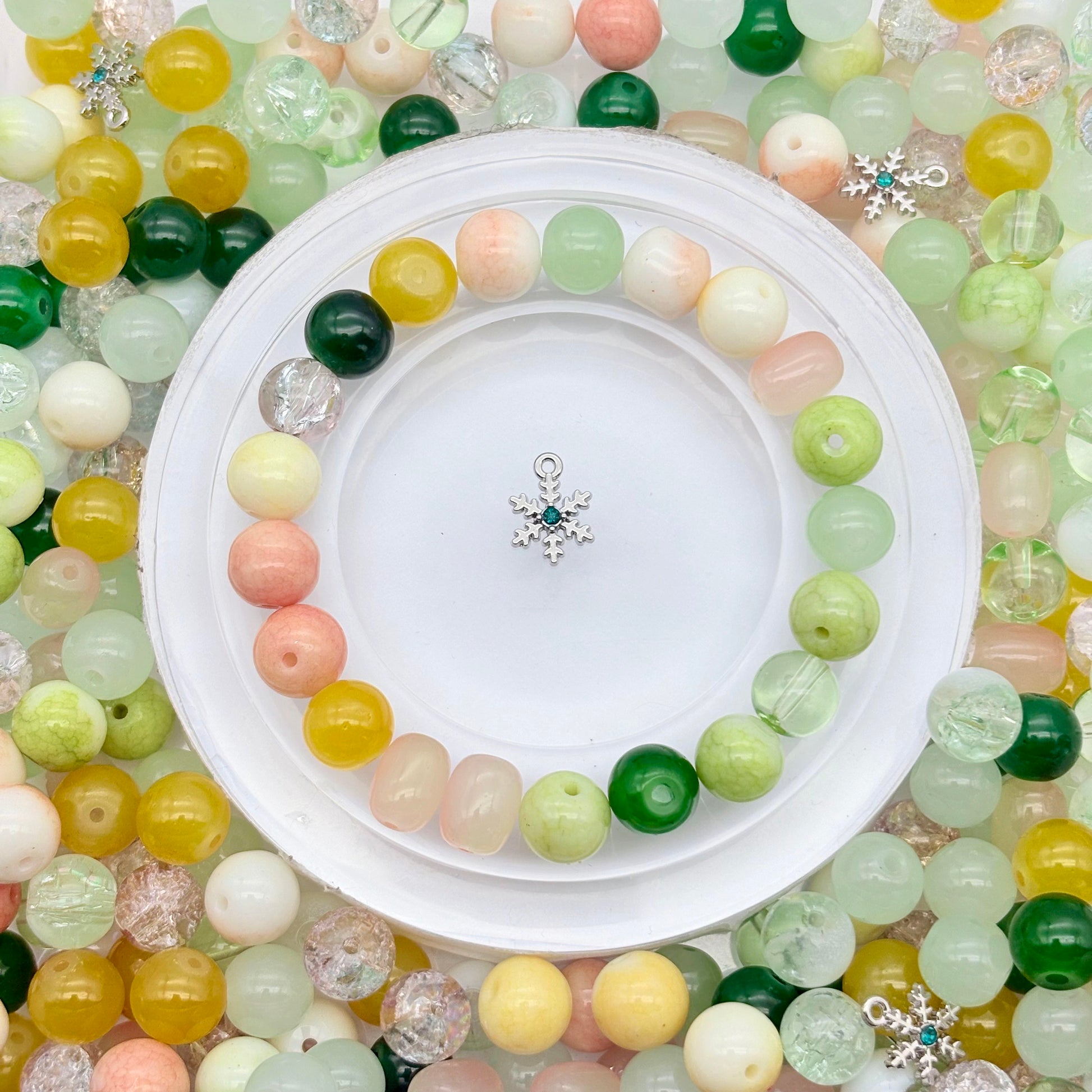- コア特徴:8mm の球形ビーズを主要サイズとし、柔らかな黄色・薄緑・淡いピンクなどの春らしい色調をカバーし、透明な紋理ビーズの造型を含み、カラーと形状がランダムにミックスされており、清新で柔らかな質感が特徴です
