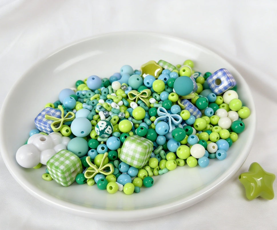 [B86]青檸格綴・青緑格子柄プラスチック串珠ミックス(30ML/50ML)