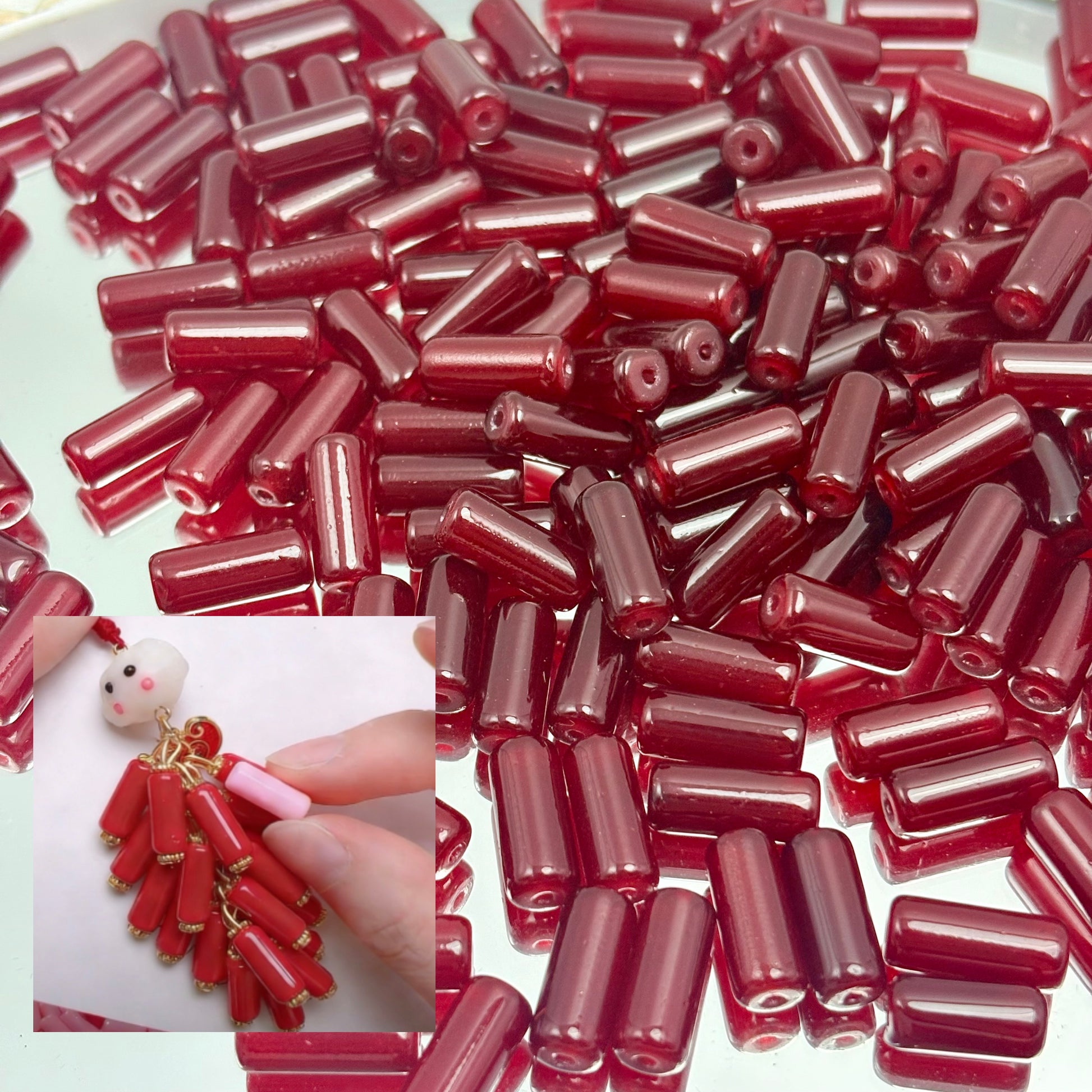 [B87]赤韵の桶綴・深紅桶型ガラス串珠(30ML/50ML)