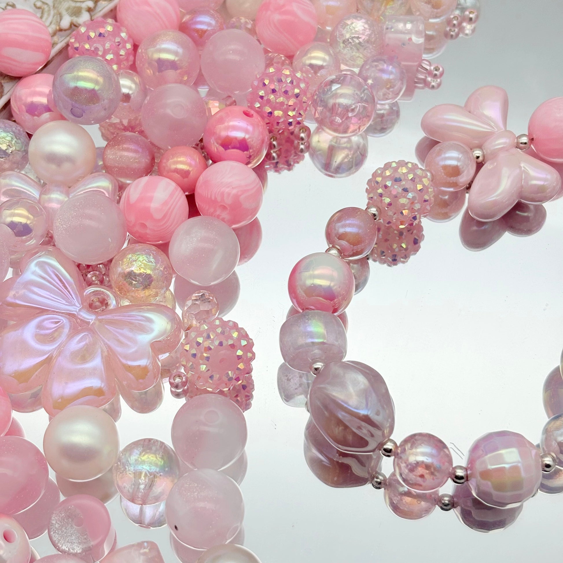 [A19]粉霧の幻虹・ビーズミックス(複数素材):柔らかなピンク虹きらめきビーズ 50ml/100ml