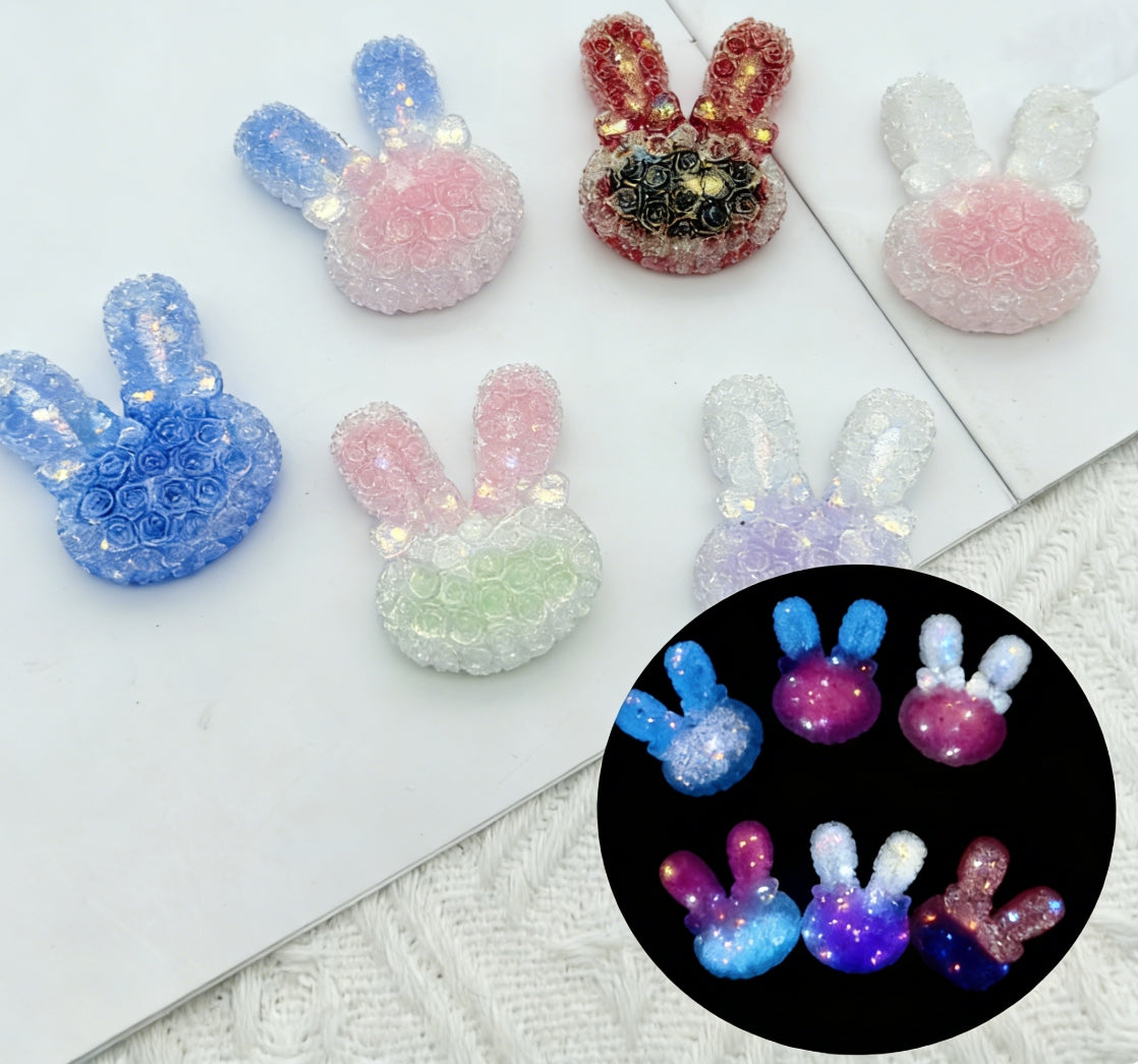 [T21]星夜萌兎・ビーズミックス(プラスチック):穴あき夜光兎型ビーズ(5 個 / 10 個カラーミックスセット)
